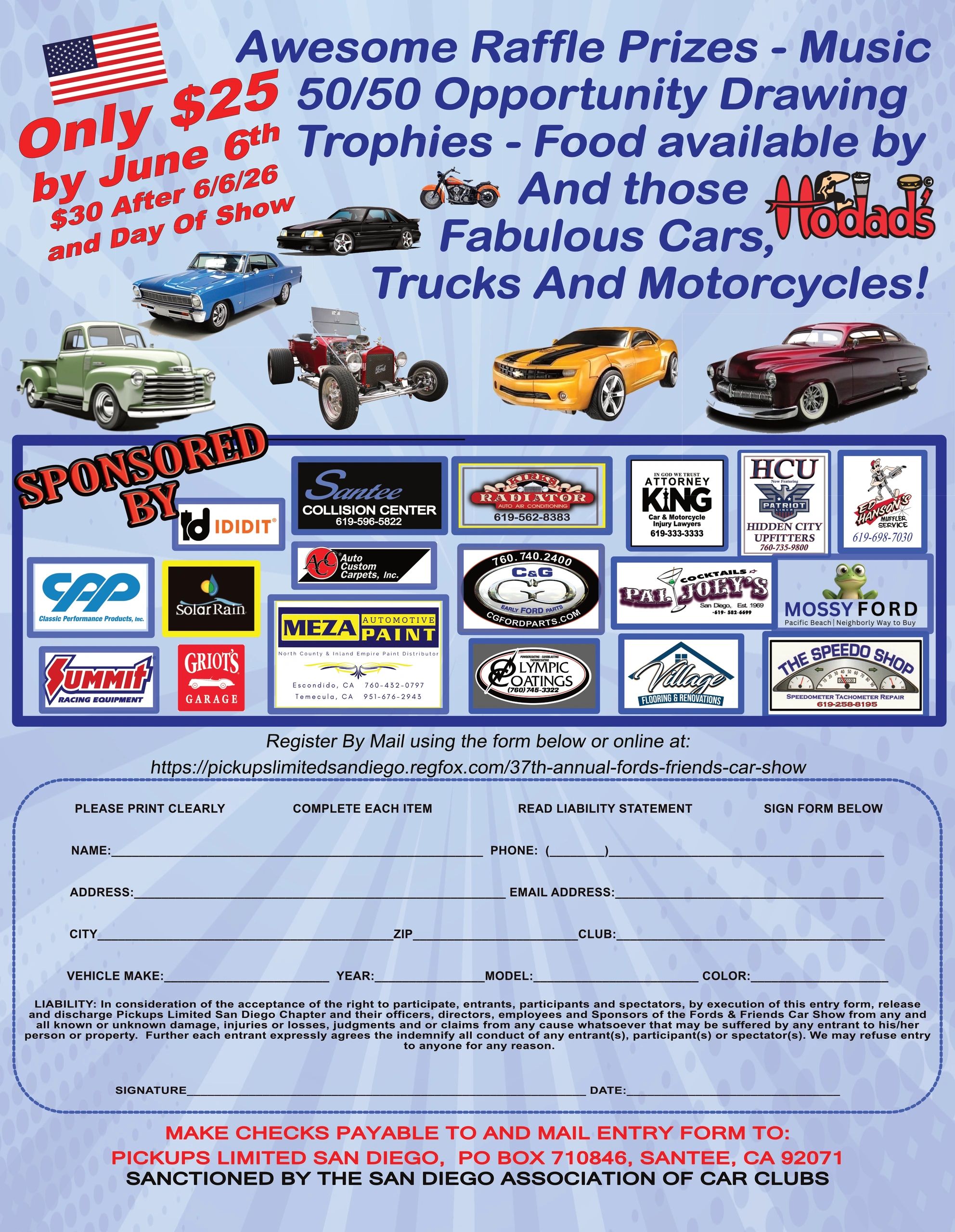 If you would like to become a member of Pick-Ups Limited San Diego Chapter, please open the link below to our membership application, fill it in and mail it to: